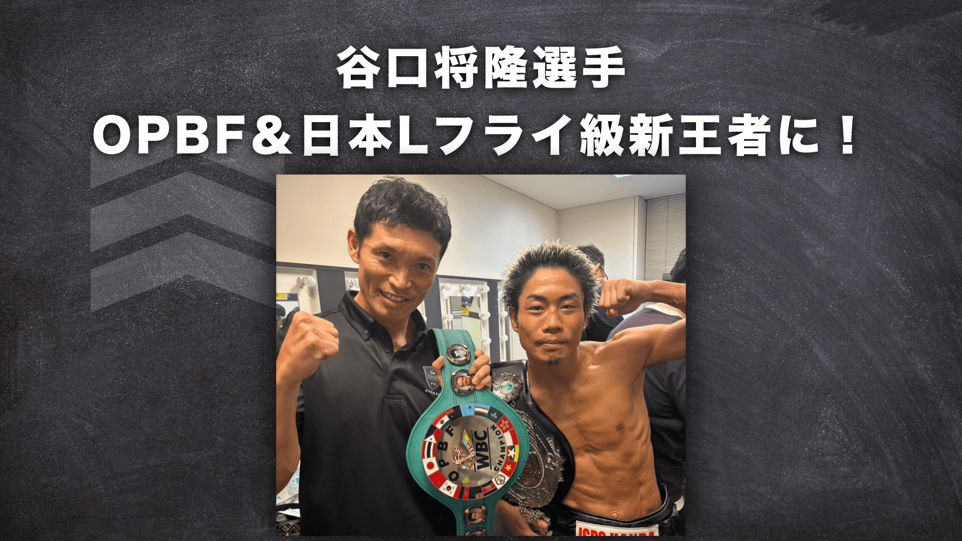 谷口将隆選手がOPBF&日本Lフライ級王者に! 2025 8/03 試合結果 Lフライ級王者 OPBF王者 TERAトレーニング フィジカル強化 ボクシング 日本王者 2025年8月3日大阪の住吉区民センターにて行われたOPBF&日本Lフライ級王座決定戦に挑み、5回TKO勝ちを、OPBF&日本Lフライ級王者に輝きました。これからも谷口将隆選手の応援をよろしくお願いします。 試合結果 Lフライ級王者 OPBF王者 TERAトレーニング フィジカル強化 ボクシング 日本王者 この記事をSNSでシェアする URLをコピーしました! 京都初開催!TERAトレイベント!8月31日 福岡県初開催!TERAトレ講習会!11月22日(土) 関連記事 堤聖也選手がWBA世界バンタム級2度目の防衛達成|ノニト・ドネア選手と両国国技館で激闘! 2025年12月17日 【空手】和歌山選抜大会で大活躍!女子団体優勝、男子団体5位、個人組手でも輝く! 2025年3月27日 日本スーパーフライ級王者・高山涼深選手が見事な防衛成功! 2024年11月14日 堤聖也選手がWBA世界バンタム級チャンピオンになりました! 2024年10月15日